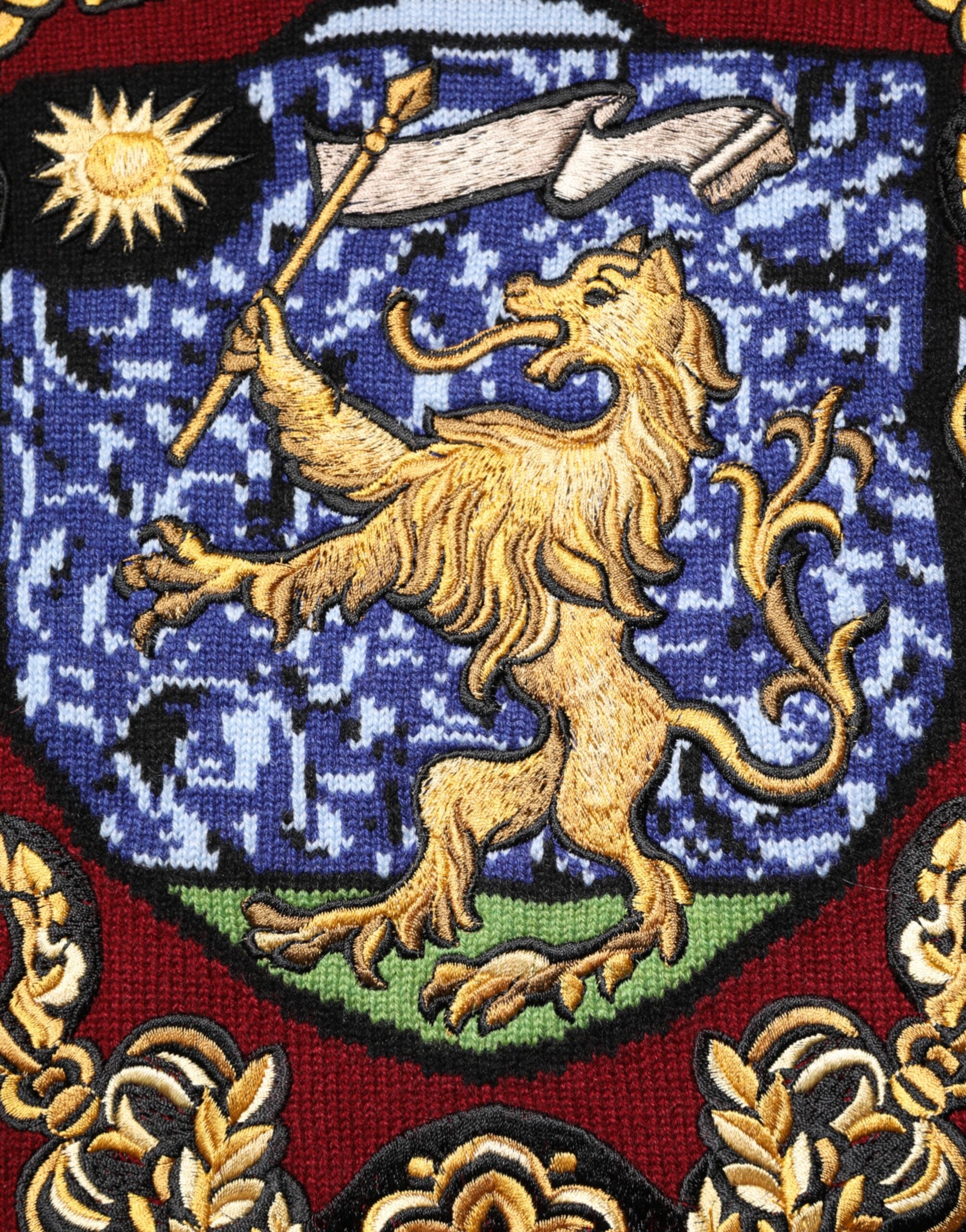 Gorgeous brand new, 100% Authentic Dolce & Gabbana pullover sweater. This rich burgundy cashmere piece features an intricately embroidered lion crest on the front, symbolizing strength and elegance — hallmarks of the brand’s regal-inspired aesthetic. Luxuriously soft and expertly crafted in Italy, it offers a refined fit with ribbed cuffs, collar, and hem for a timeless silhouette. A true statement of sophistication and craftsmanship.