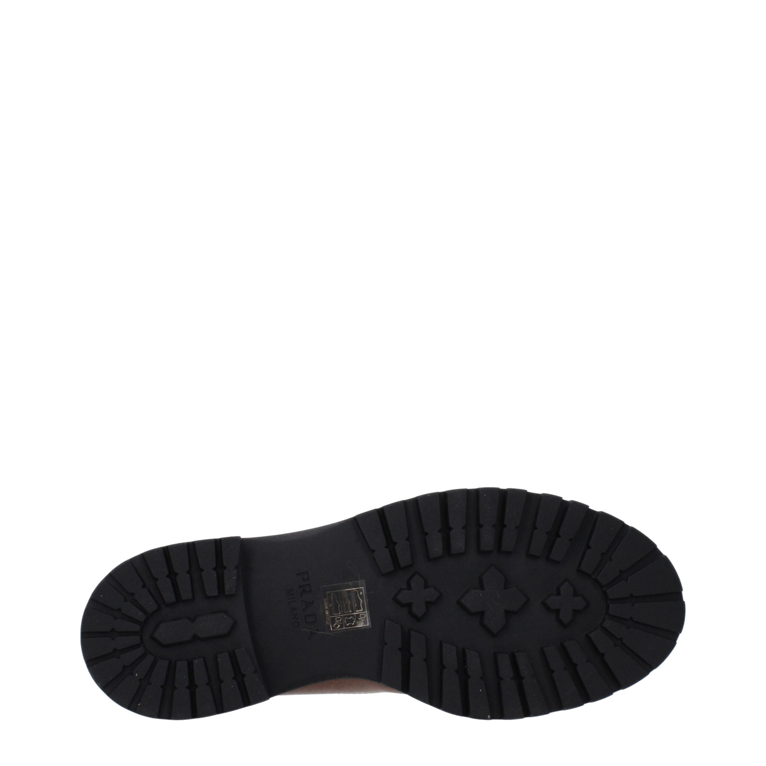 Description: The product with MPN 1T704N3LPP055F0046 and code F85445 leather in brown is a ankle boots designed by Prada. It has features like front logo, side logo, back logo, vintage effect, aged effect, scratching effect.