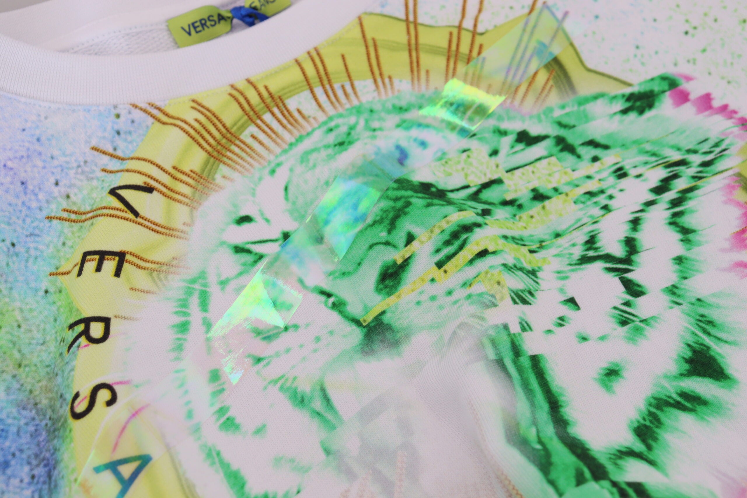 Gorgeous brand new with tags, 100% Authentic VERSACE JEANS long sleeves crew neck sweater. Model: Long sleeve sweater Color: White Graphic Print Logo details Made in Italy Materials: 100% Cotton
